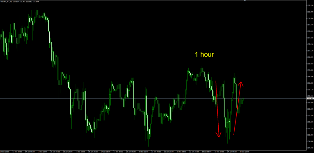 1時間足自体は大きく下げた後、結局全戻しに近いチャートになっている。